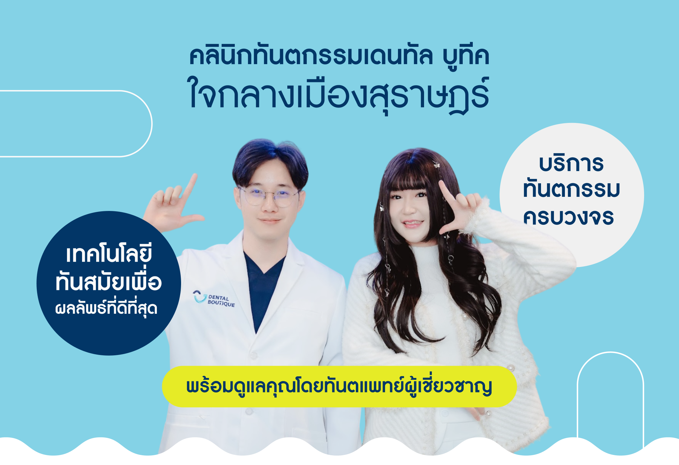 DENTAL BOUTIQUE DENTAL CLINIC PROVIDES SERVICES IN ALL FIELDS OF DENTISTRY Experienced dentist, professional team and dental technology นัดหมายพบทันตแพทย์ ทำไมต้องเลือกทำฟันกับ คลินิกทันตกรรมเดนทัล บูทีค คุณหมอมากประสบการณ์ทันตแพทย์ผู้เชี่ยวชาญ ดูแล อย่างใส่ใจ ให้คำแนะนำที่เข้าใจง่าย และช่วยแก้ไขปัญหาฟัน ของคุณอย่างตรงจุด คุณหมอมากประสบการณ์ทันตแพทย์ผู้เชี่ยวชาญ ดูแล อย่างใส่ใจ ให้คำแนะนำที่เข้าใจง่าย และช่วยแก้ไขปัญหาฟัน ของคุณอย่างตรงจุด คุณหมอมากประสบการณ์ทันตแพทย์ผู้เชี่ยวชาญ ดูแล อย่างใส่ใจ ให้คำแนะนำที่เข้าใจง่าย และช่วยแก้ไขปัญหาฟัน ของคุณอย่างตรงจุด บริการของเรา คลินิกทันตกรรมเดนทัล บูทีค เราให้บริการครบวงจร พร้อมดูแลคุณแล้ววันนี้ นัดหมายพบทันตแพทย์ ครบทุกการดูแลฟันด้วยบริการทันตกรรมครบวงจร คลินิกทันตกรรมเดนทัล บูทีค พร้อมดูแลคุณโดยทันตแพทย์ผู้เชี่ยวชาญ นัดหมายพบทันตแพทย์ รวมเคสรีวิว โดยทันตแพทย์ผู้เชี่ยวชาญ เคสรากฟันเทียม ระบบ ดิจิตอล ผลลัพท์ที่ได้ "คนไข้สามารถยิ้มได้อย่างมั่นใจ ฟันเทียมสามารถใช้งานได้เหมือนจริง" นัดหมายพบทันตแพทย์ เคสเซรามิกวีเนียร์ ผลลัพท์ที่ได้ "ฟันเรียงสวย ดูเป็นธรรมชาติ กรอฟันจริงเพียงเล็กน้อย" นัดหมายพบทันตแพทย์ เคสเซรามิกวีเนียร์ ผลลัพท์ที่ได้ "ฟันเรียงสวย ดูเป็นธรรมชาติ กรอฟันจริงเพียงเล็กน้อย" นัดหมายพบทันตแพทย์ เคสอุดปิดช่องว่างฟันหน้า ผลลัพท์ที่ได้ "คนไข้ยิ้มได้อย่างมั่นใจ ด้วยฟันที่เรียงสวย เป็นธรรมชาติ" นัดหมายพบทันตแพทย์ ได้รับความไว้วางใจ จากคนไข้อีกมากมาย นัดหมายพบทันตแพทย์ ติดต่อเรา คลินิกทันตกรรมเดนทัล บูทีค ถนนศรีเกษม 14 ในลึกจ.สุราษฎร์ธานี TEL: 090 256 9914 LINE: @DENTALBOUTIQUE FB: DENTAL BOUTIQUE คลิกเพื่อดูแผนที่ ลงทะเบียน รับสิทธิพิเศษก่อนใคร Contact Form Homeชื่อ- นามสกุลเบอร์ติดต่อLineIDติดต่อเรื่องใดนัดหมายพบทันตแพทย์